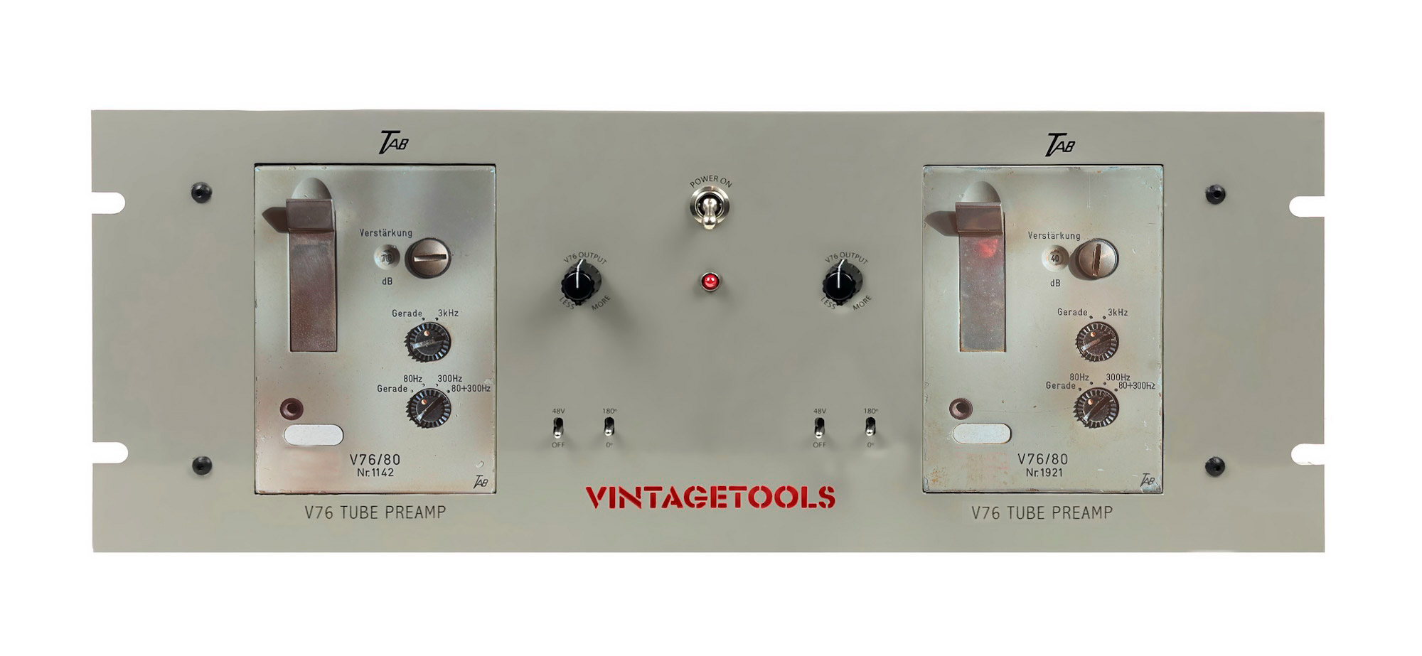 This is a Vintagetools VT7xL rack equipped with two of the legendary TAB V76/80 tube preamplifiers. The chassis is built in 19" / 4U format and manufactured to a very high standard. Both modules were professionally serviced and recapped in our workshop.